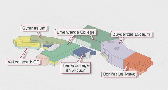 Dus was het voor het voortgezet onderwijs in Emmeloord gisteravond een belangrijke dag. Niet eerder in de geschiedenis van de gemeente werd zo'n hoog bedrag aan één project uitgegeven. De nieuwe campus voor voortgezet onderwijs moet verrijzen op een perceel langs de Peppellaan en de Espelerlaan, waar nu al het Emelwerda College en het Vakcollege staan. Hier zijn twee grote, grotendeels nieuwe gebouwen gepland, waar in totaal zeven scholen en zo'n 2800 leerlingen een plek krijgen.