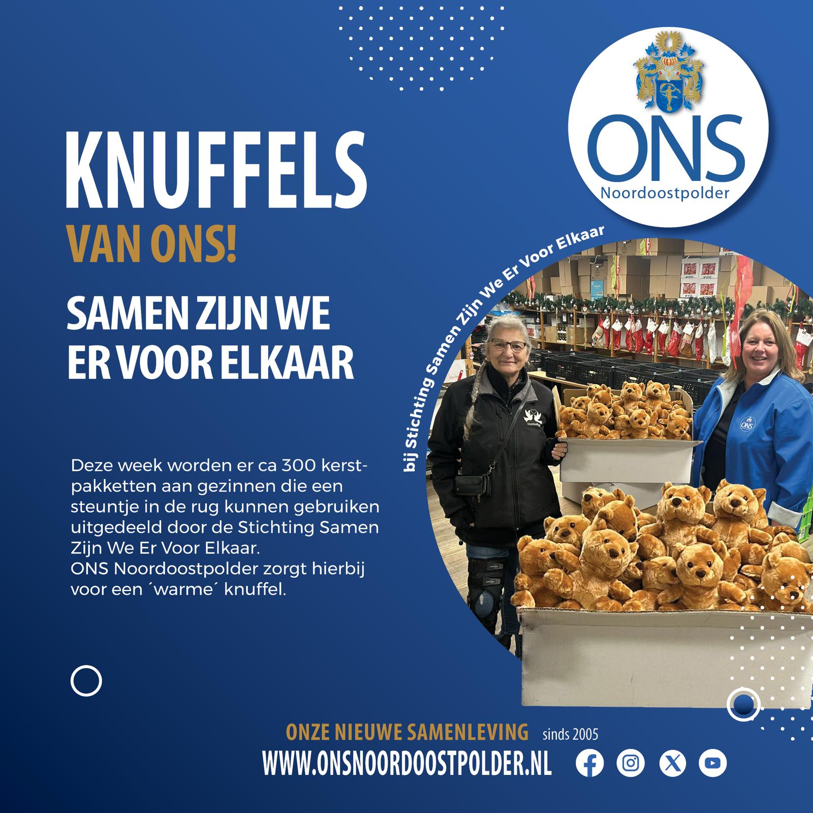 ONS schenkt 300 knuffelberen aan Stichting "Samen Zijn We Er Voor Elkaar".